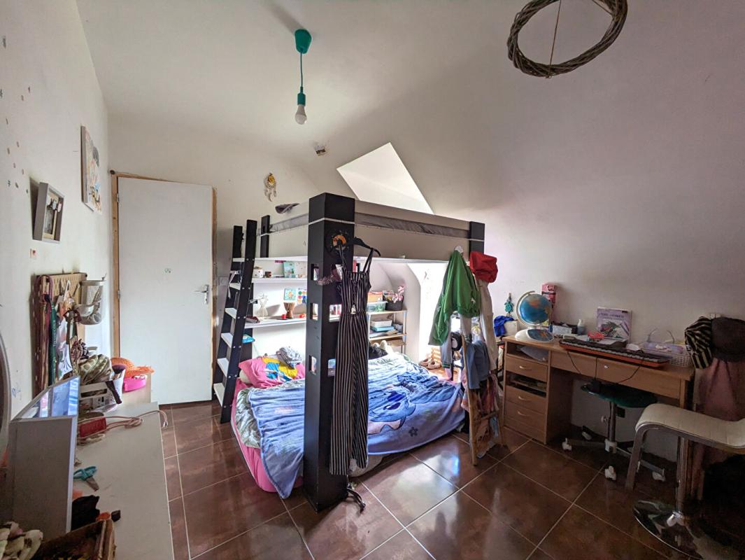 A l’étage un palier vient desservir deux chambres, une suite parentale (chambre + salle de bain), une salle d’eau à finir de rénover et WC.