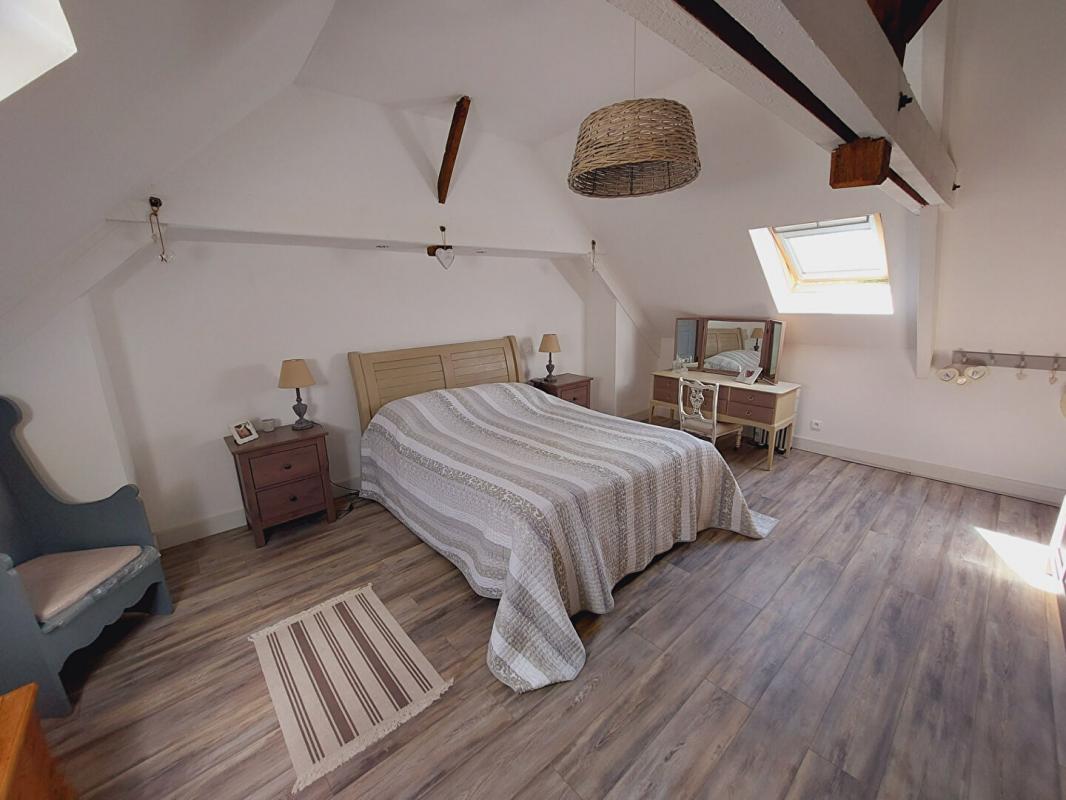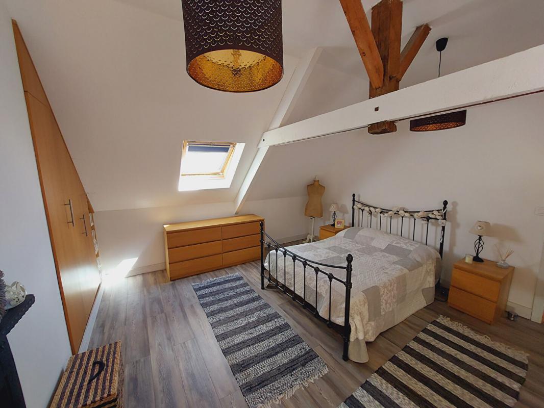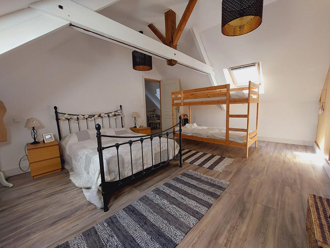 A l’étage, un palier dessert deux grandes chambres dont une avec placards et une salle de bains.