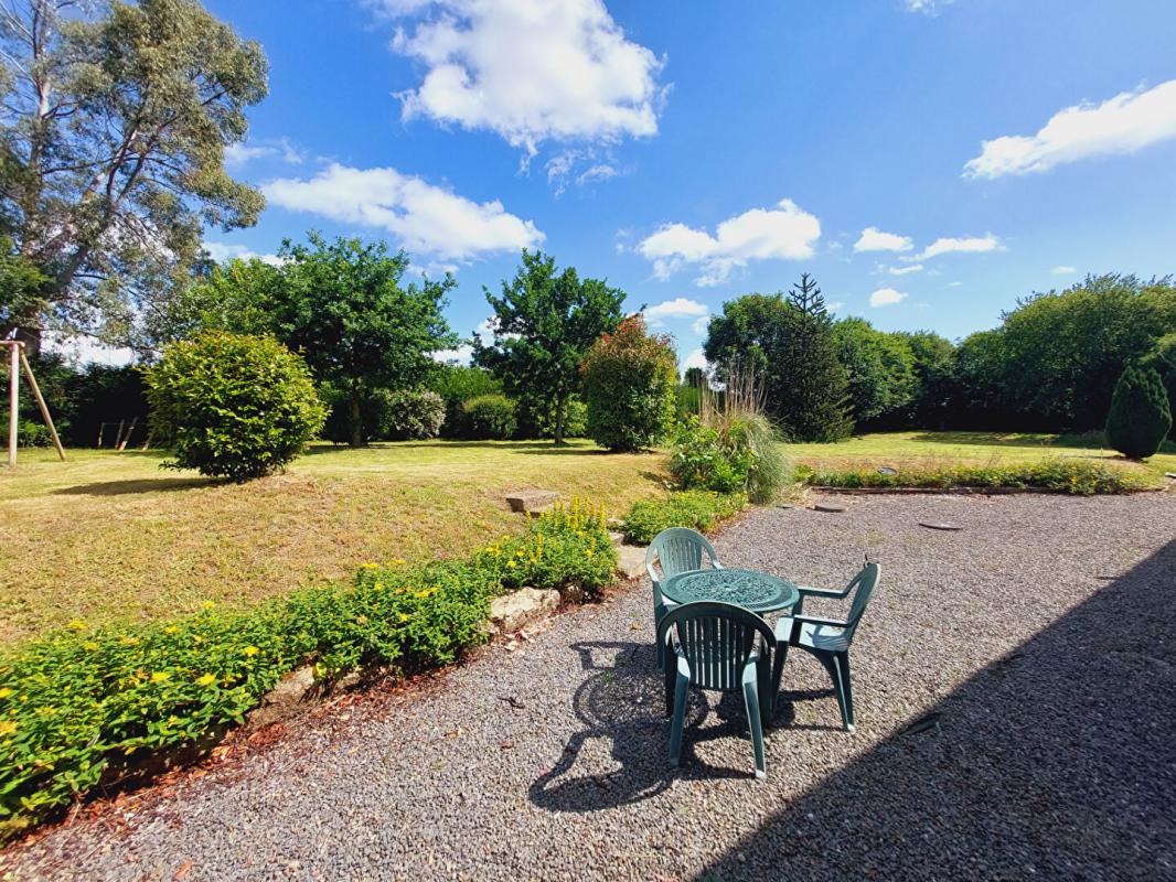 A l’arrière de cette somptueuse longère, on y retrouve un grand jardin arboré de 2000m² sans vis-à-vis.