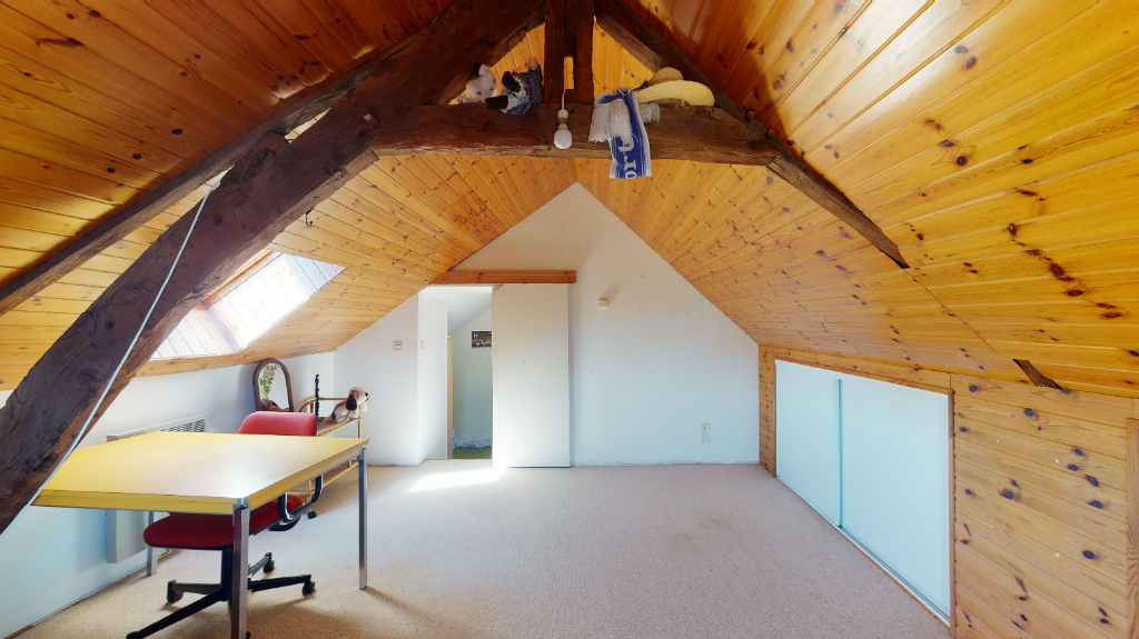 A l’étage: une mezzanine dessert 2 belles chambres, chacune équipée d’un placard dont l’une d’elle dispose d’un espace douche privatif , salle de bains, WC.