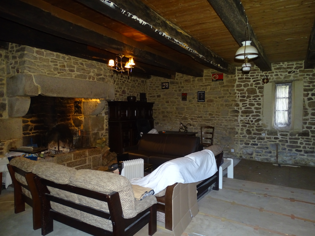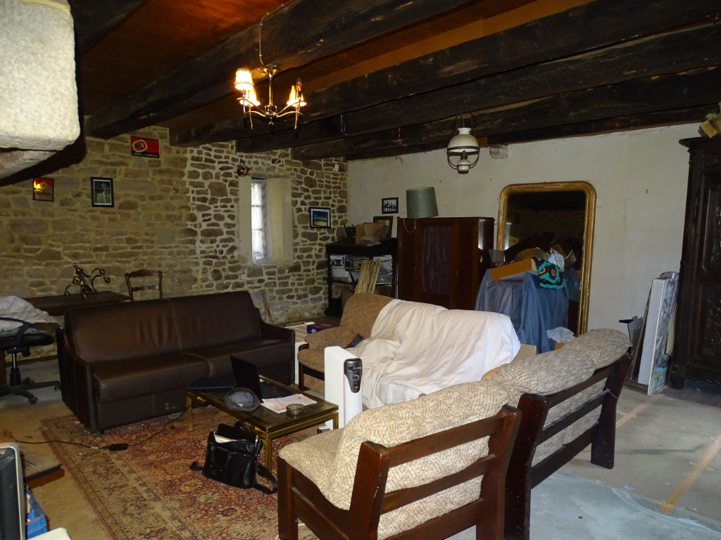 Proche Sens de Bretagne, longère indépendante en pierres, à restaurer, comprenant une maison d’habitation avec cuisine et cheminée à foyer ouvert, salle de bains, wc, pièce de vie.
