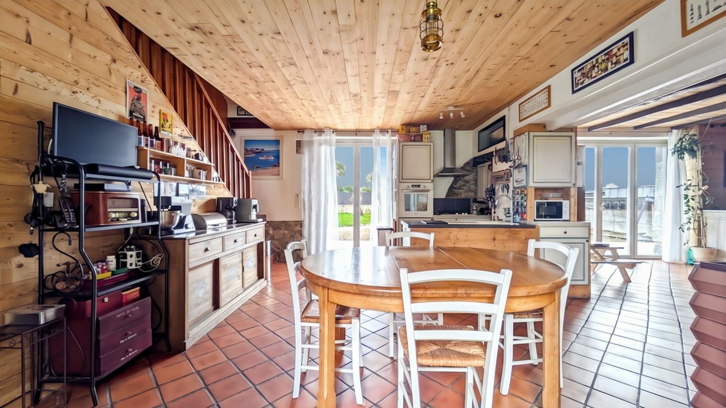 Dans le prolongement, vous découvrirez une cuisine ouverte sur séjour, ainsi qu’un salon de 34 m² avec superbe cheminée, véritable pièce de caractère.