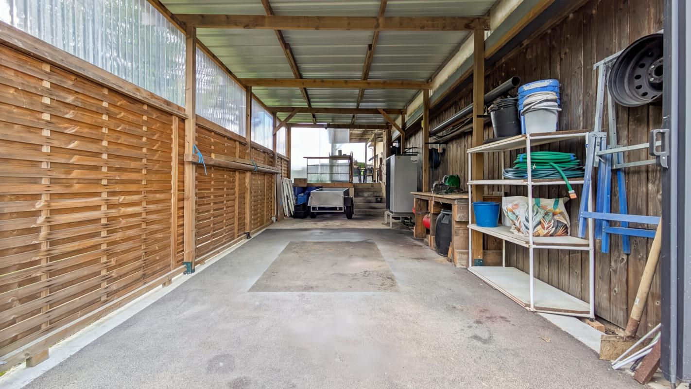 Un atelier de 56 m² avec mezzanine de rangement de 13 m², un carport, une terrasse couverte, un abri de jardin et un abri bois complètent idéalement la propriété.