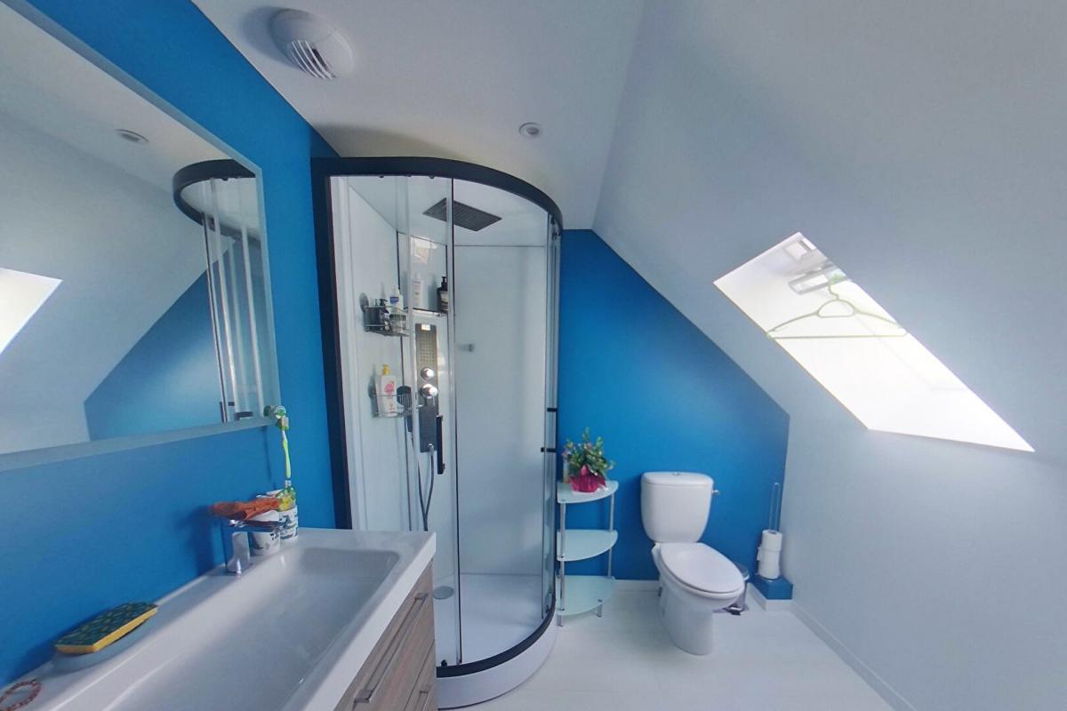 A l’étage : un palier dessert 3 chambres, une salle d’eau avec WC, et un grenier.