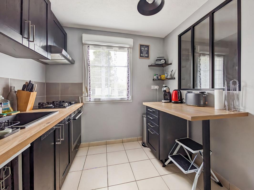 Elle dispose d’une cuisine équipée indépendante, d’une pièce de vie lumineuse d’environ 25m² exposée Sud-Est ouvrant sur la terrasse et le jardin.