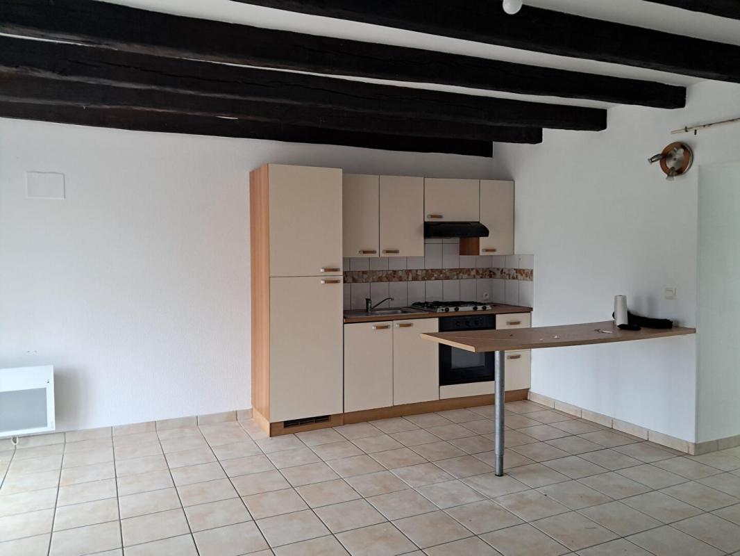 Maison comprenant une entrée avec placard, pièce de vie avec cuisine aménagée et équipée, cheminée, WC. A l’étage : palier desservant deux chambres, salle de bains/WC. Terrasse et terrain clos avec abri de jardin. Garage. Chauffage électrique. Libre