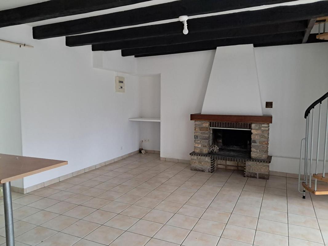 Maison comprenant une entrée avec placard, pièce de vie avec cuisine aménagée et équipée, cheminée, WC. A l’étage : palier desservant deux chambres, salle de bains/WC. Terrasse et terrain clos avec abri de jardin. Garage. Chauffage électrique. Libre