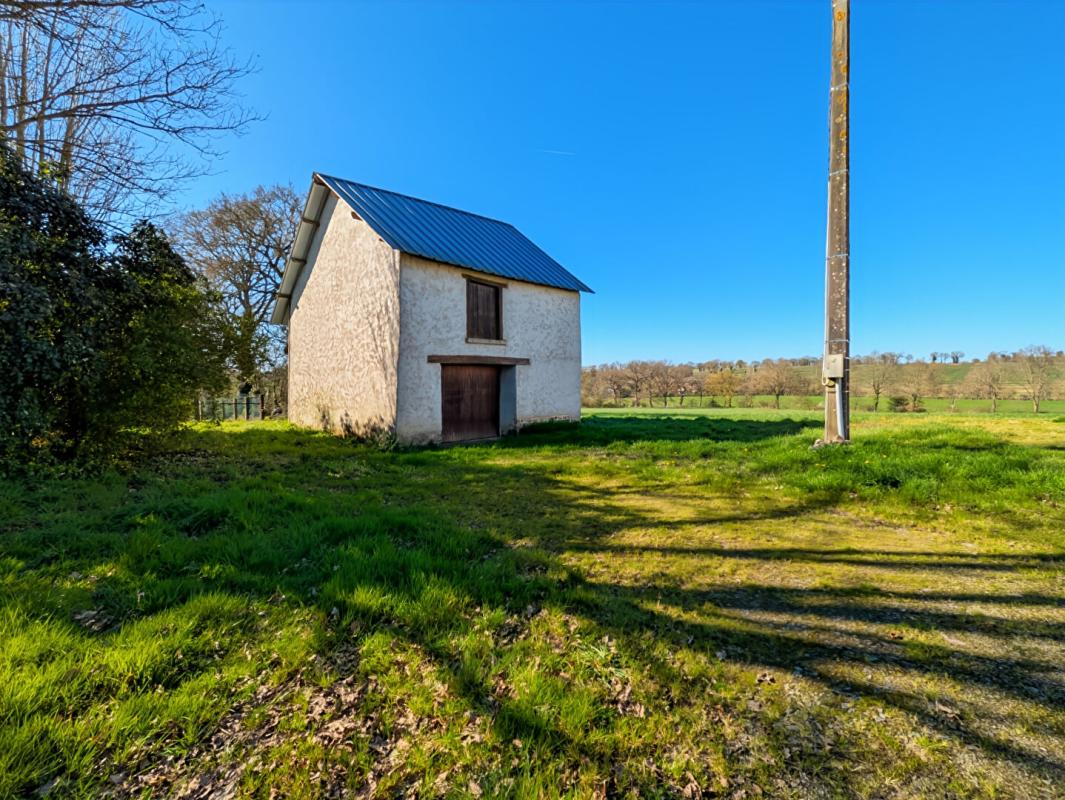 La partie principale de plain pieds offrant un séjour avec un poêle a bois, suivi d’une cuisine. 3 chambre, une salle de bains, une buanderie et d’un WC. Elle bénéficie également d’un garage séparé construit en pierre et en terre. avec grenier