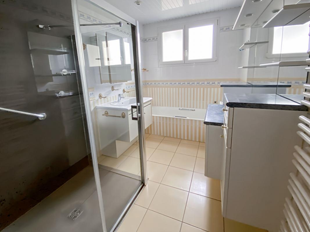 Excellente construction de 1965, soubassement pierre, très beaux volumes. Cette maison nécessite un rafraîchissement et comprend un appartement en rez-de-chaussée avec cuisine aménagée et équipée, salon, suite parentale avec salle d’eau, WC séparé.