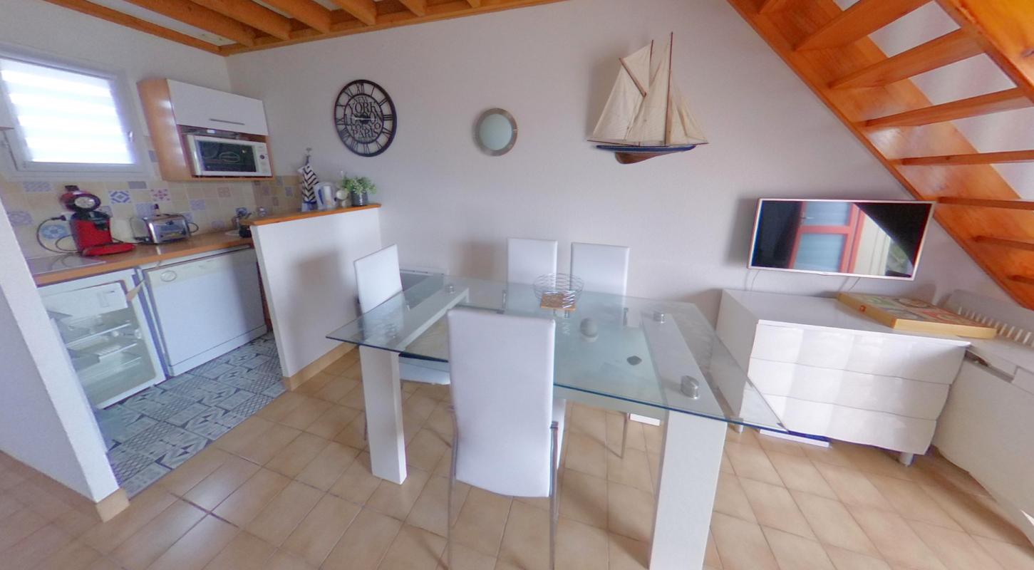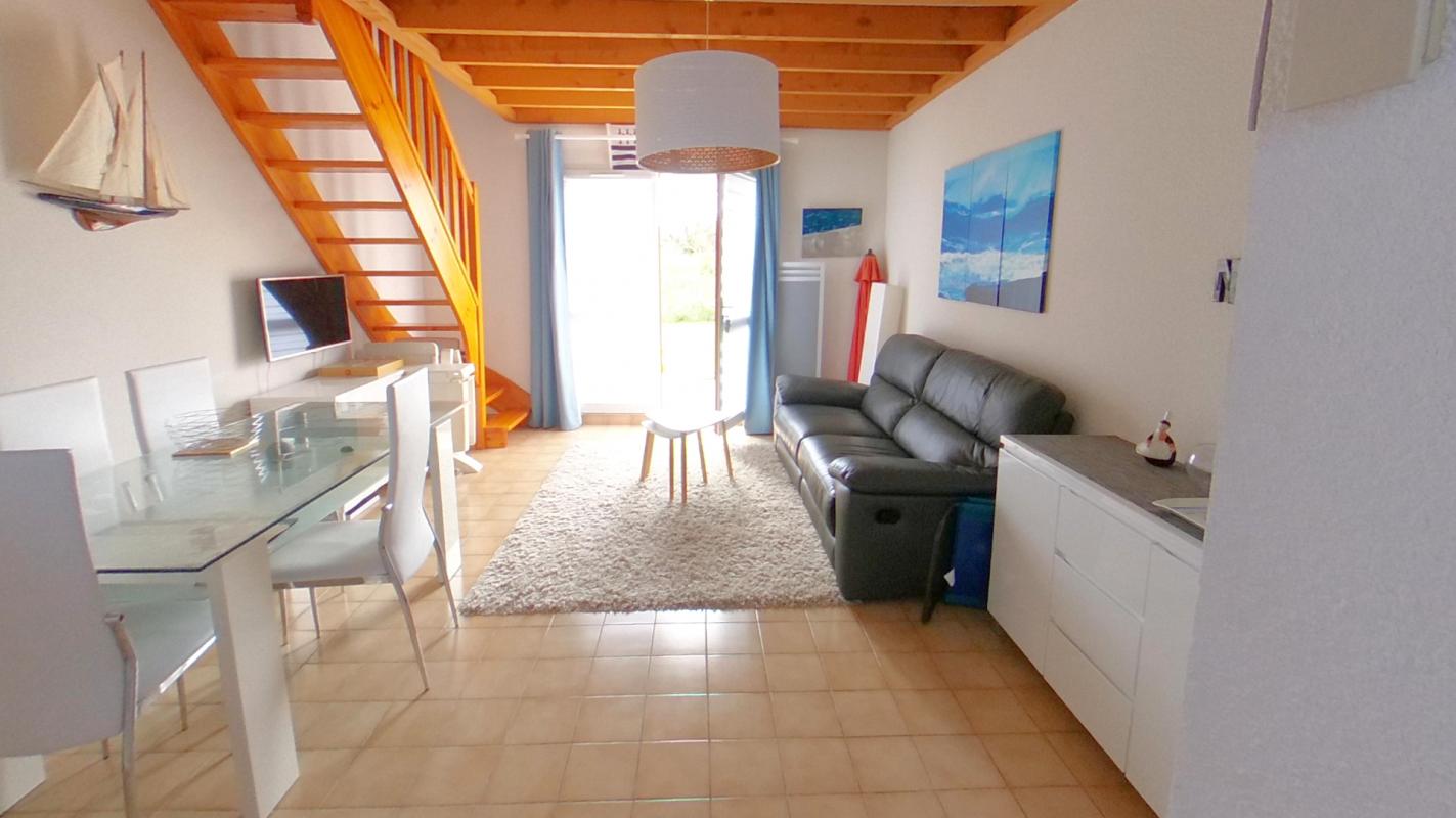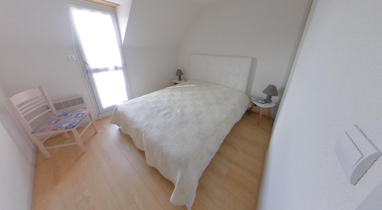 charmante maison de vacances de 42 m2 en parfait état, pièce de vie avec coin cuisine équipée donnant sur terrasse et jardin, wc, étage : 2 chambres, sdb, combles aménageables. un garage privé en sous -sol, local vélo et planche à voile à disposition.