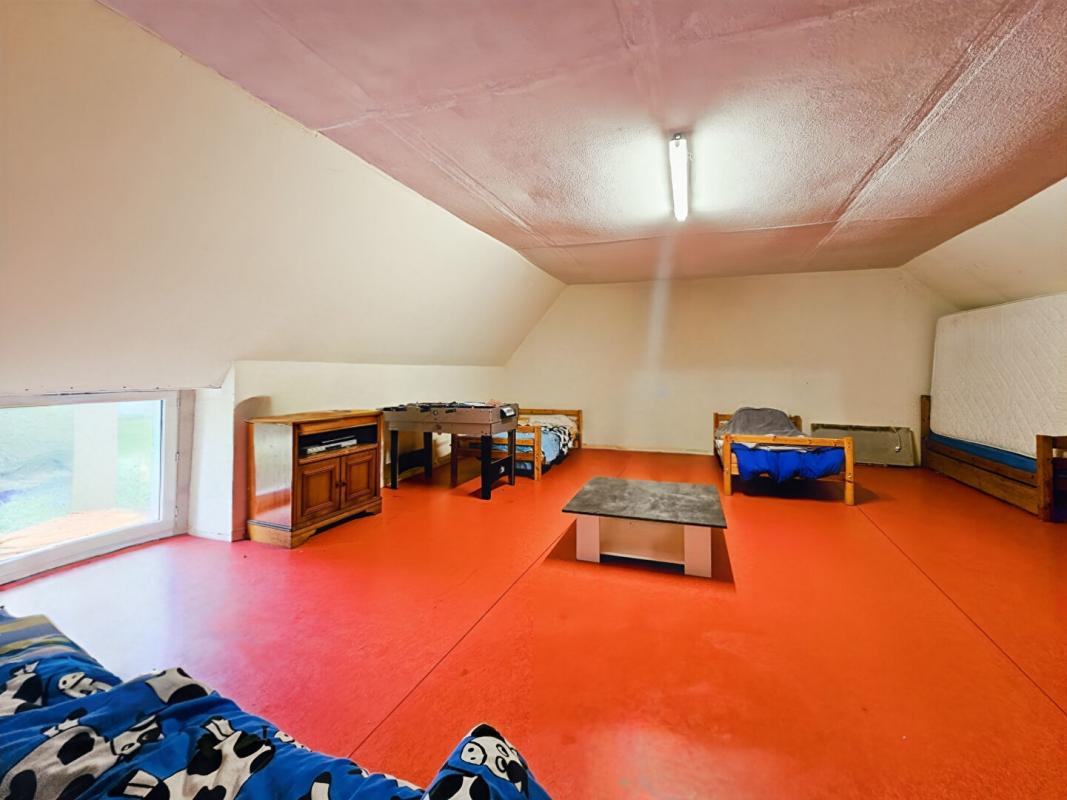A l’étage: un palier dessert un grand dégagement, trois chambres dont deux de 15m², une salle d’eau avec WC et une grande mezzanine de 33m² permettant de faire une salle de sport, loisirs, ou d’aménager d’autres chambres.