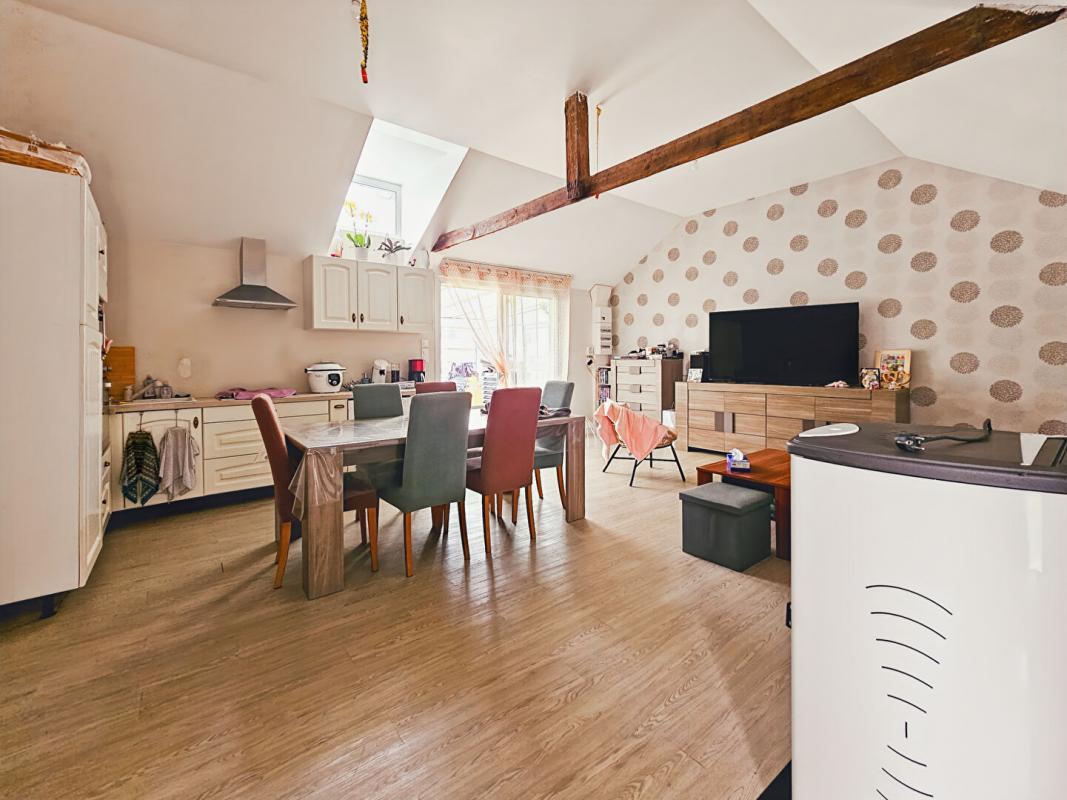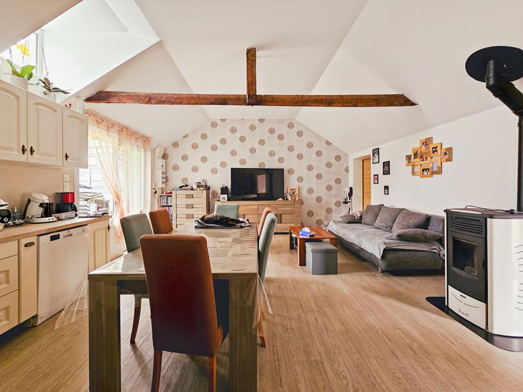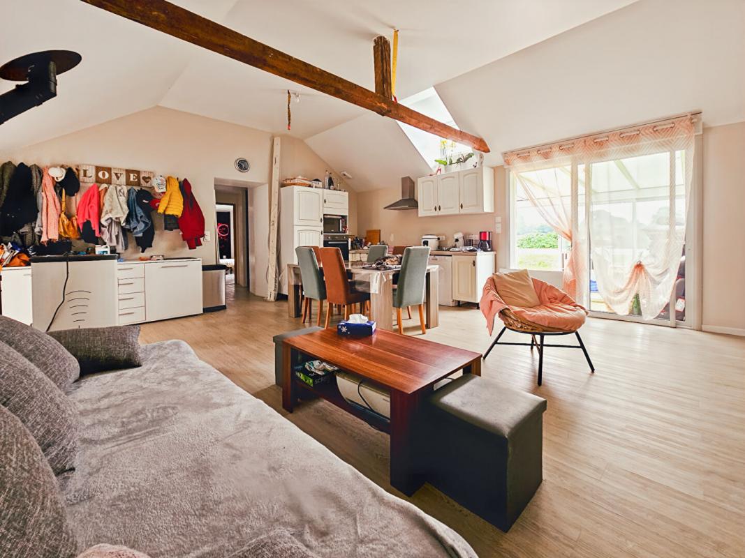 Cette maison construite en parpaings/pierres et couverte en ardoises naturelles est composée d’une entrée avec WC indépendant, de trois chambres, d’une salle d’eau (rafraichissement à finir et d’un vaste séjour avec cuisine ouverte aménagée et équipée avec poêle à granulés. Enfin, une véranda vient compléter ce bien mais ne fait pas partie de la superficie habitable évoquée.
