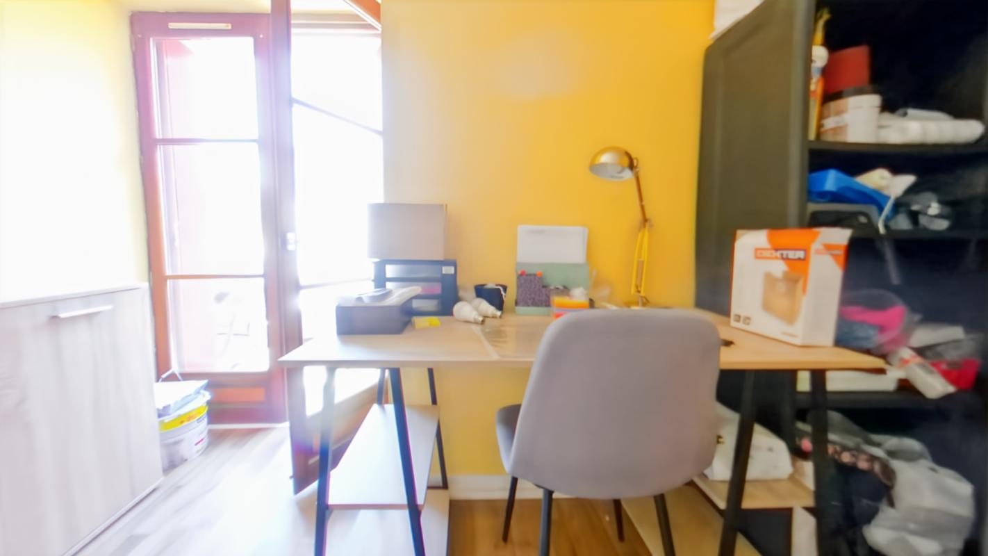 Maison comprenant au RDC une pièce de vie, une chambre avec salle d’eau, WC. A l’étage : palier desservant une chambre, un bureau, salle d’eau, WC.