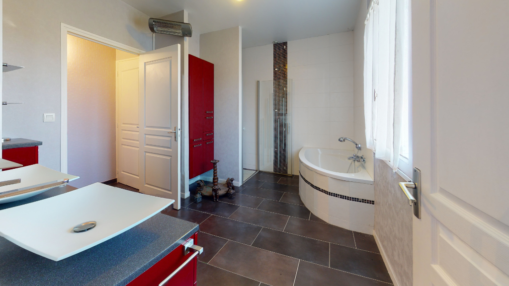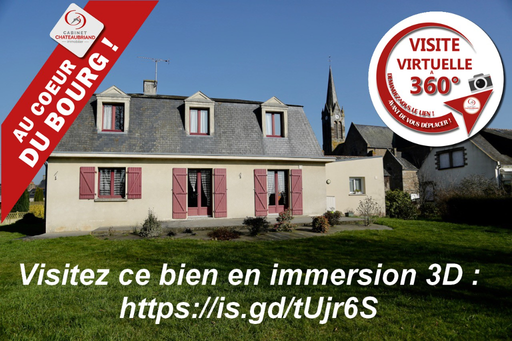 SENS DE BRETAGNE, emplacement privilégié, au coeur du bourg, maison indépendante, redécorée au goût du jour offrant: entrée avec placard, cuisine aménagée, séjour avec cheminée, salon avec cheminée, suite parentale avec dressing et salle de bains + douche à l’italienne privative, wc. a l’étage: 4 grandes chambres. Terrain 1200 m². Classe énergie : D