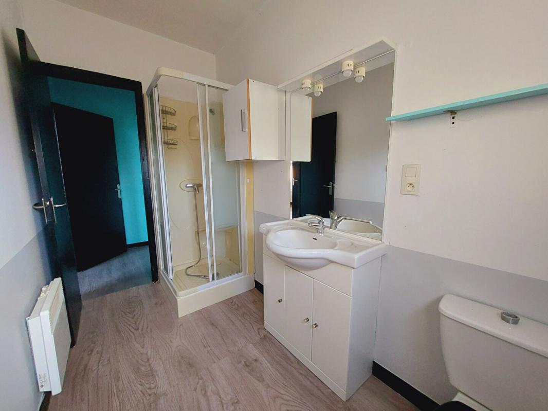 Dans le prolongement, un couloir permet d’accéder à une salle d’eau avec WC et deux grandes chambres avec placards.