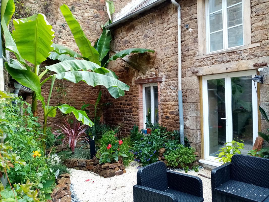 Vous découvrirez une cour arborée avec un four à pain, un espace établi et un annexe de 6 m² pouvant servir à un bureau.