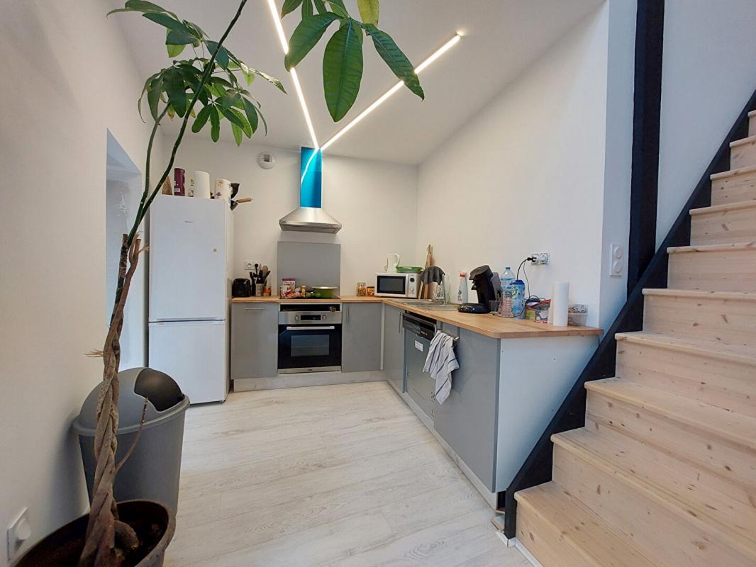Au rez-de-chaussée: une entrée dessert une salle à manger avec cuisine ouverte, un WC indépendant, une salle d’eau.