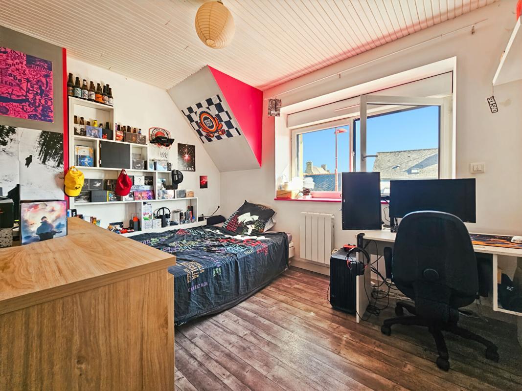 A l’étage, un palier dessert trois chambres, un bureau, un débarras et une salle d’eau avec WC.