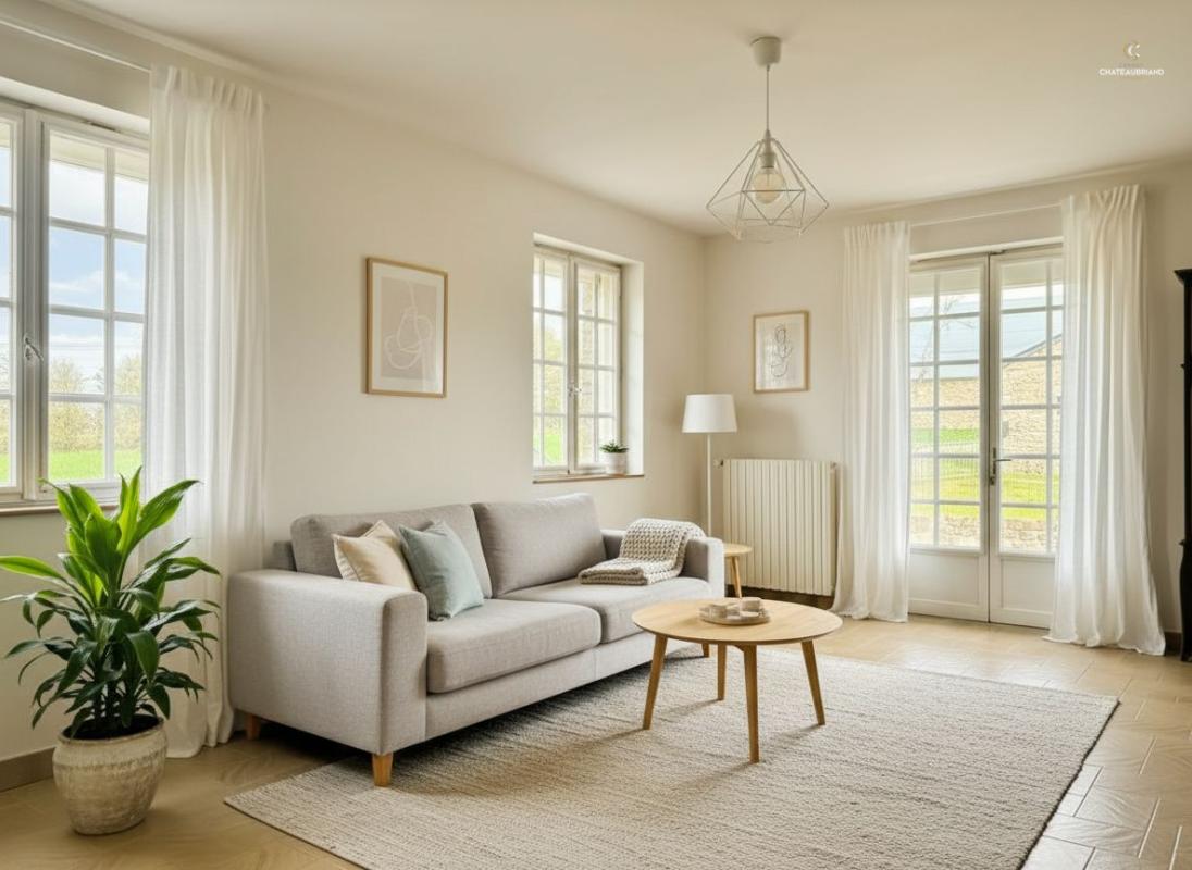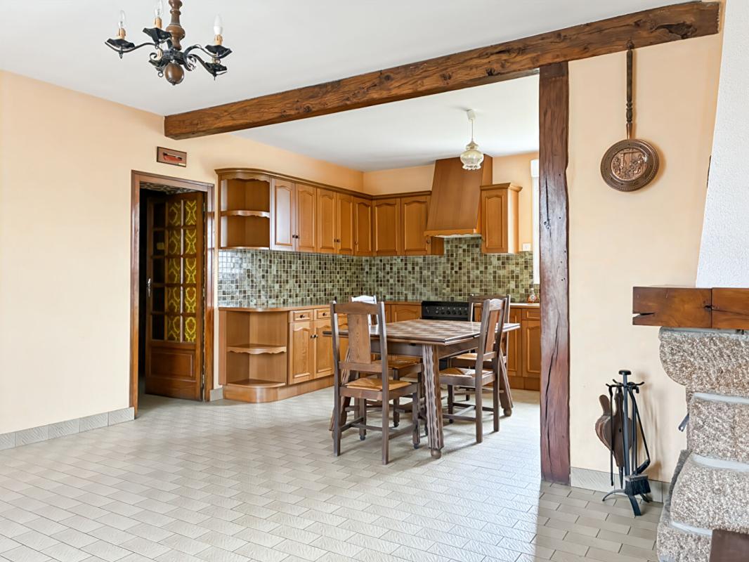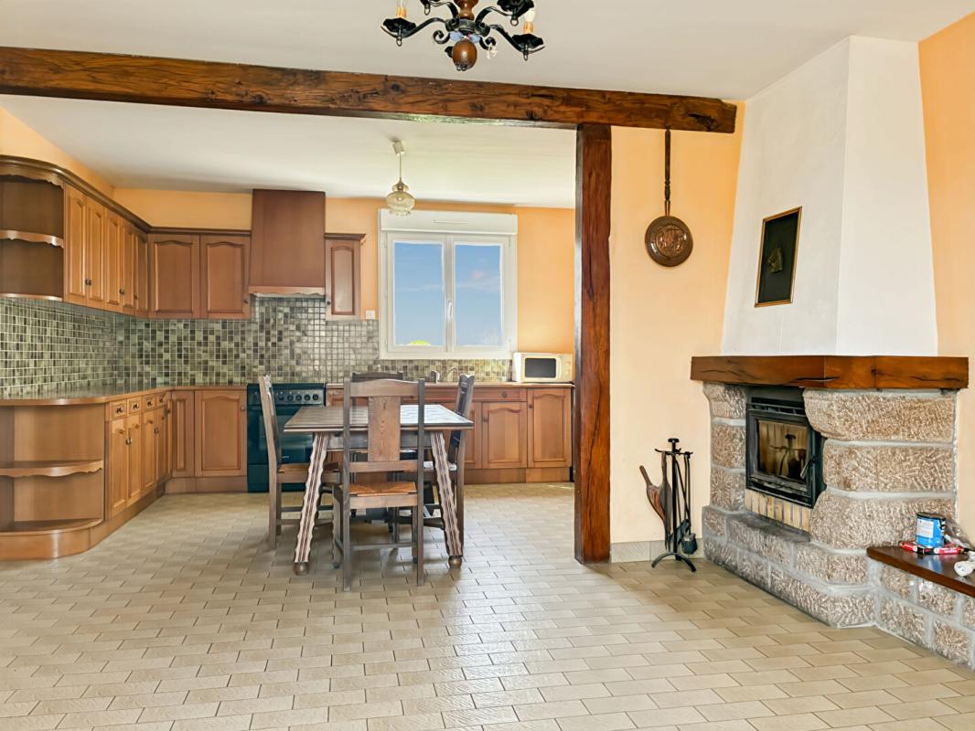 Dès l’entrée, vous serez séduit par une spacieuse cuisine avec espace repas de 29 m², agrémentée d’une cheminée avec insert, parfaite pour des moments conviviaux. Le salon lumineux de 23,27 m² complète agréablement l’espace de vie.