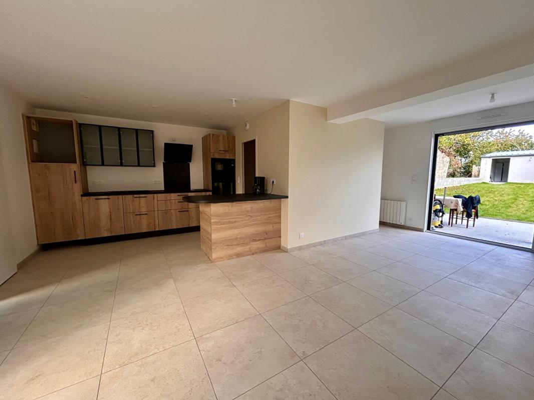 PLERGUER – A deux pas du centre, charmante maison de 79.64 m² (81.99 m² au sol) entièrement rénovée et offrant de belles prestations, située dans un bourg calme, comprenant au rez-de-chaussée une lumineuse pièce de vie ouverte sur une cuisine toute aménagée et équipée (four, hotte, plaque induction, micro-ondes, réfrigérateur et lave vaisselle), une arrière cuisine ainsi qu’un wc.