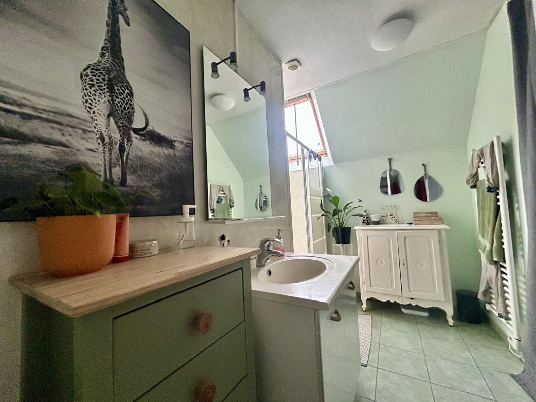 A l’étage; un palier dessert deux autres chambres ainsi qu’une salle de bain.