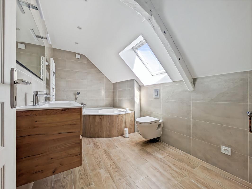 Le 1er niveau est complété par une chambre et une salle d’eau.