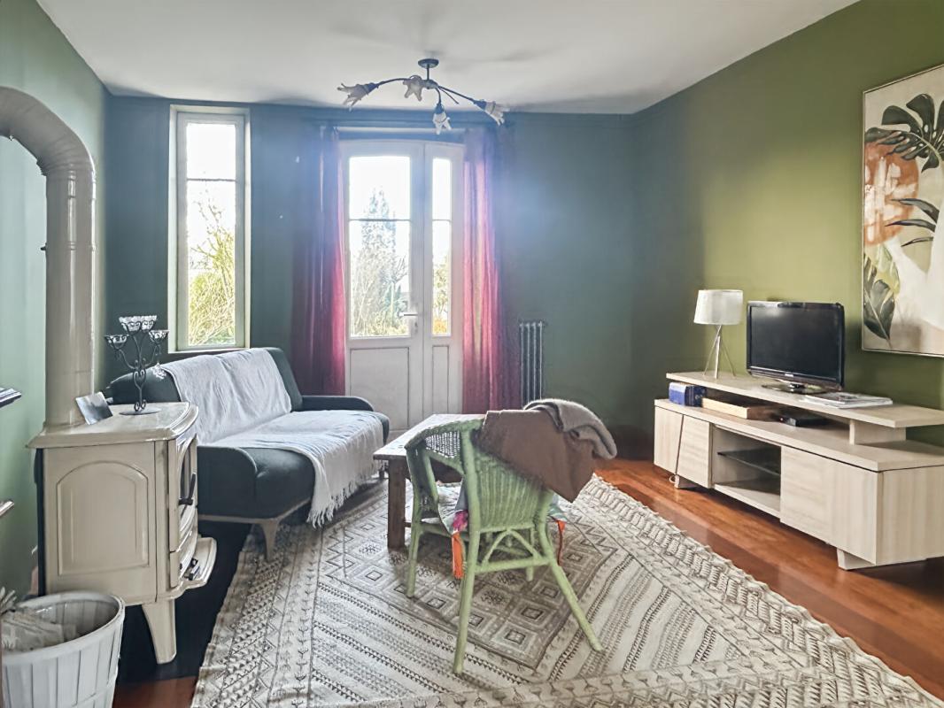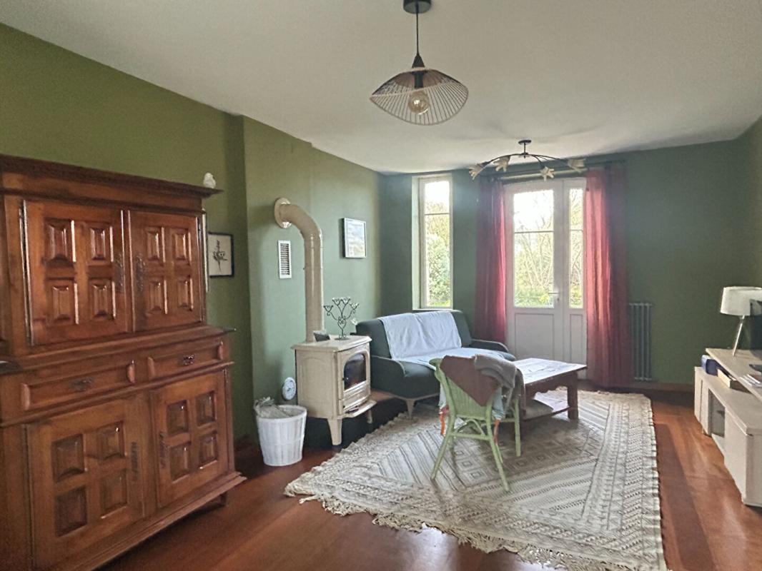 Dès l’entrée, vous découvrirez un salon baigné de lumière grâce à son bow-window, réchauffé par un poêle à bois, suivi d’un séjour convivial et d’une cuisine ouverte.