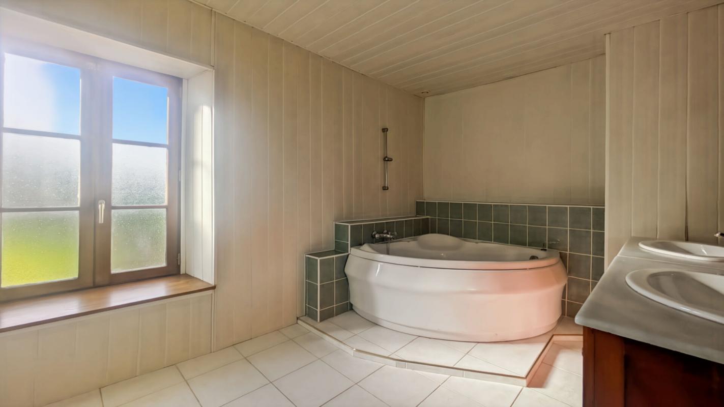 – Étage : 4 chambres dont une avec dressing, salle de bains et salle d’eau avec WC.