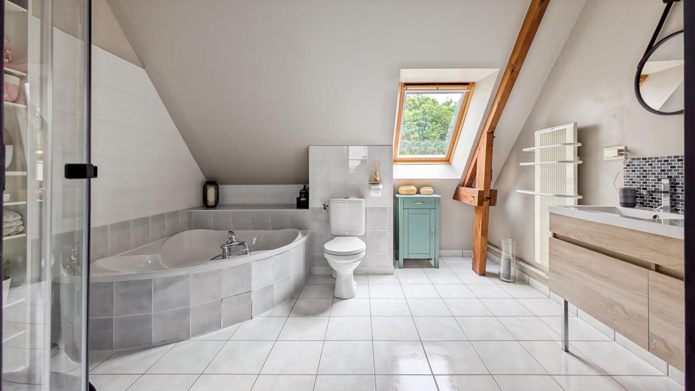 Une salle de bains supplémentaire avec douche et WC.