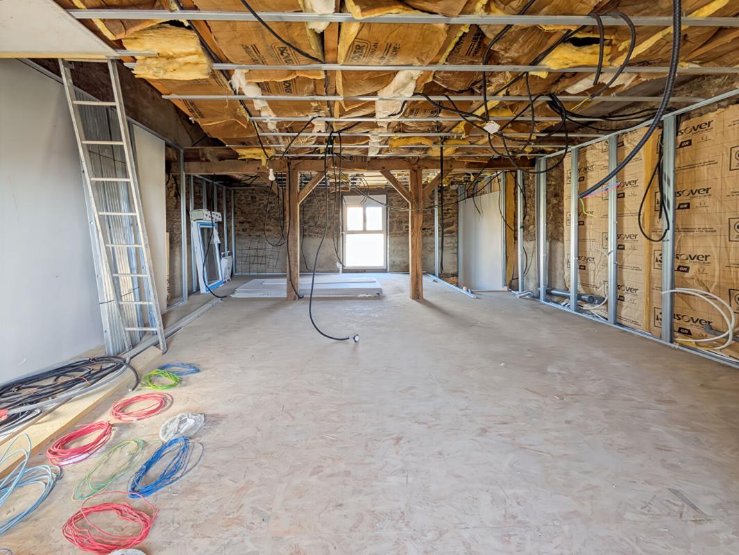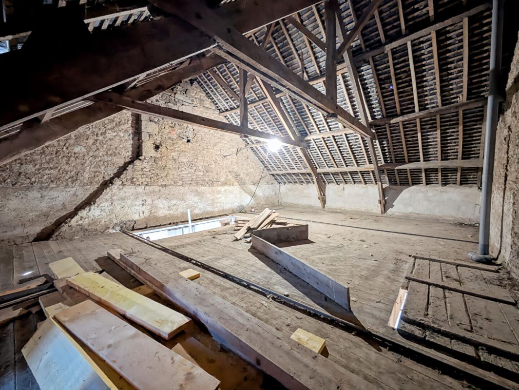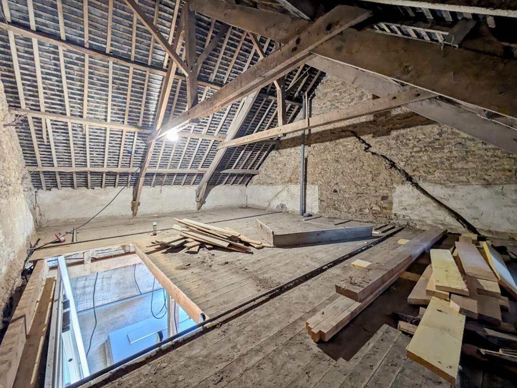 Le bien se compose de deux niveaux d’environ 40 m² chacun, entièrement à terminer de rénover selon vos envies et vos besoins. Un grenier vient compléter l’ensemble, offrant un espace supplémentaire.
