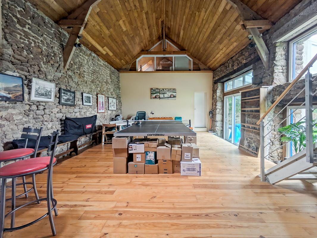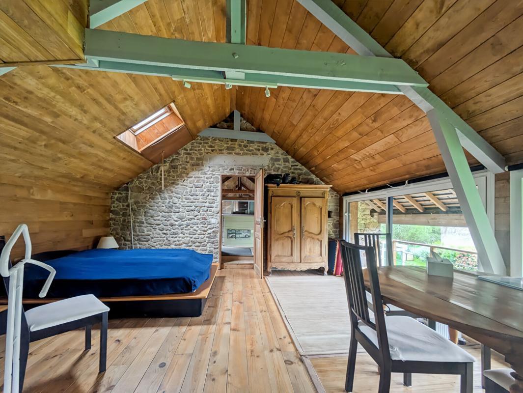 Vous bénéficierez également d’une grande bâtisse avec au rez-de-chaussée: un atelier avec poêle à bois, salle de réception, un garage. A l’étage une chambre avec salle d’eau/WC et une pièce aménageable.