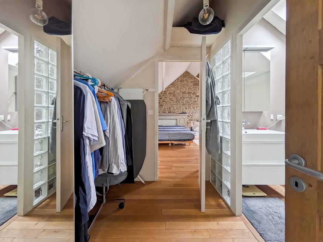 A l’étage: une grande chambre avec salle d’eau/WC, coin dressing, une deuxième chambre et une salle de bain.