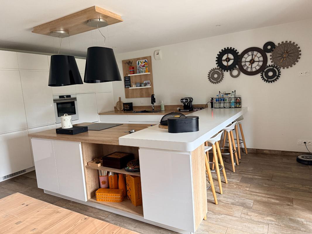 – au rez-de-chaussée : une vaste pièce à vivre (70 m2) exposée sud avec cuisine de qualité ouverte sur salle à manger et salon avec un poêle à bois, une suite parentale avec chambre, salle d’eau grand dressing et WC.