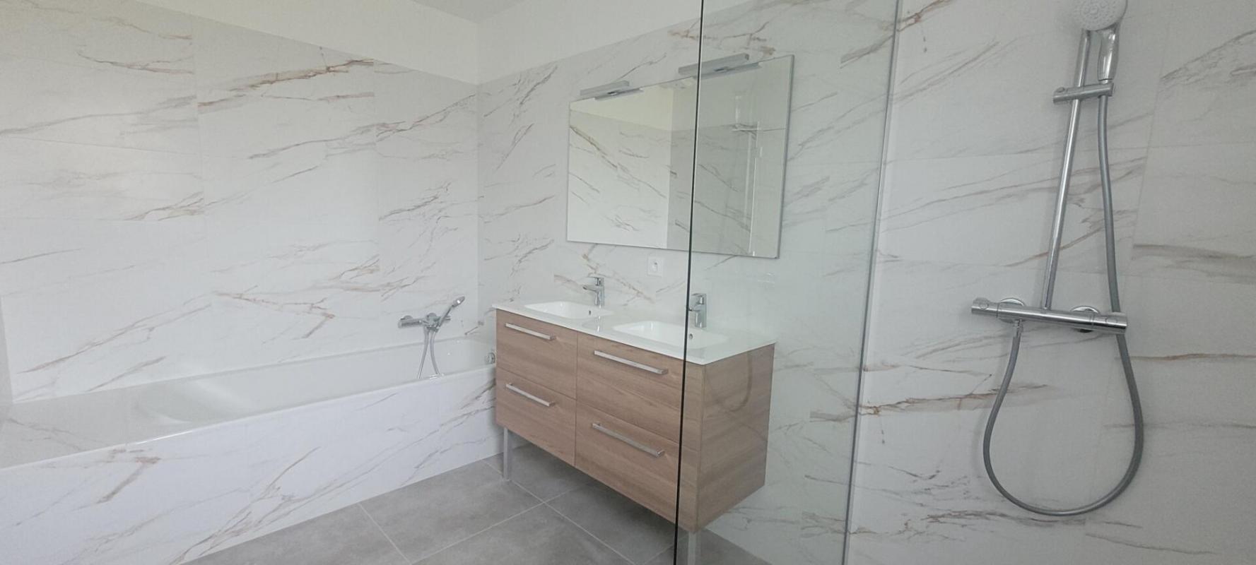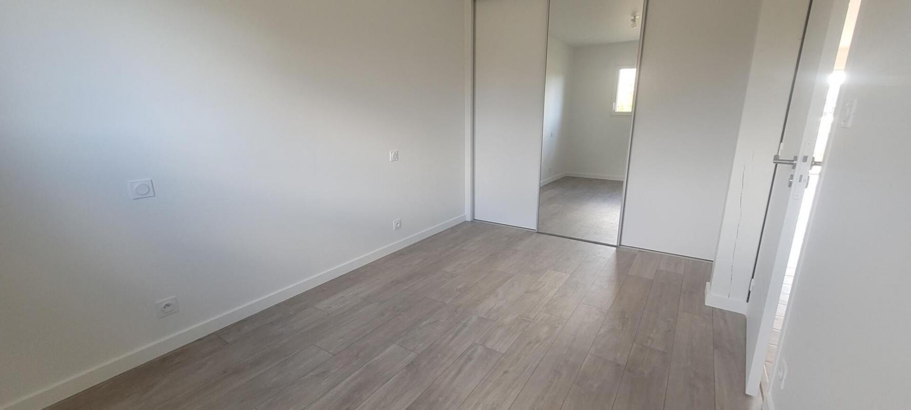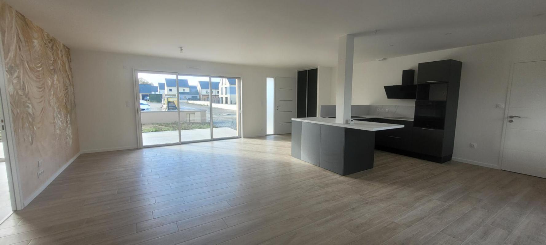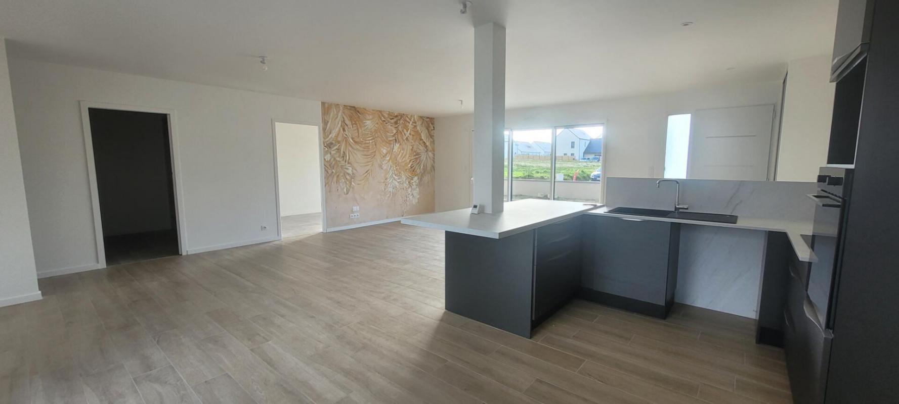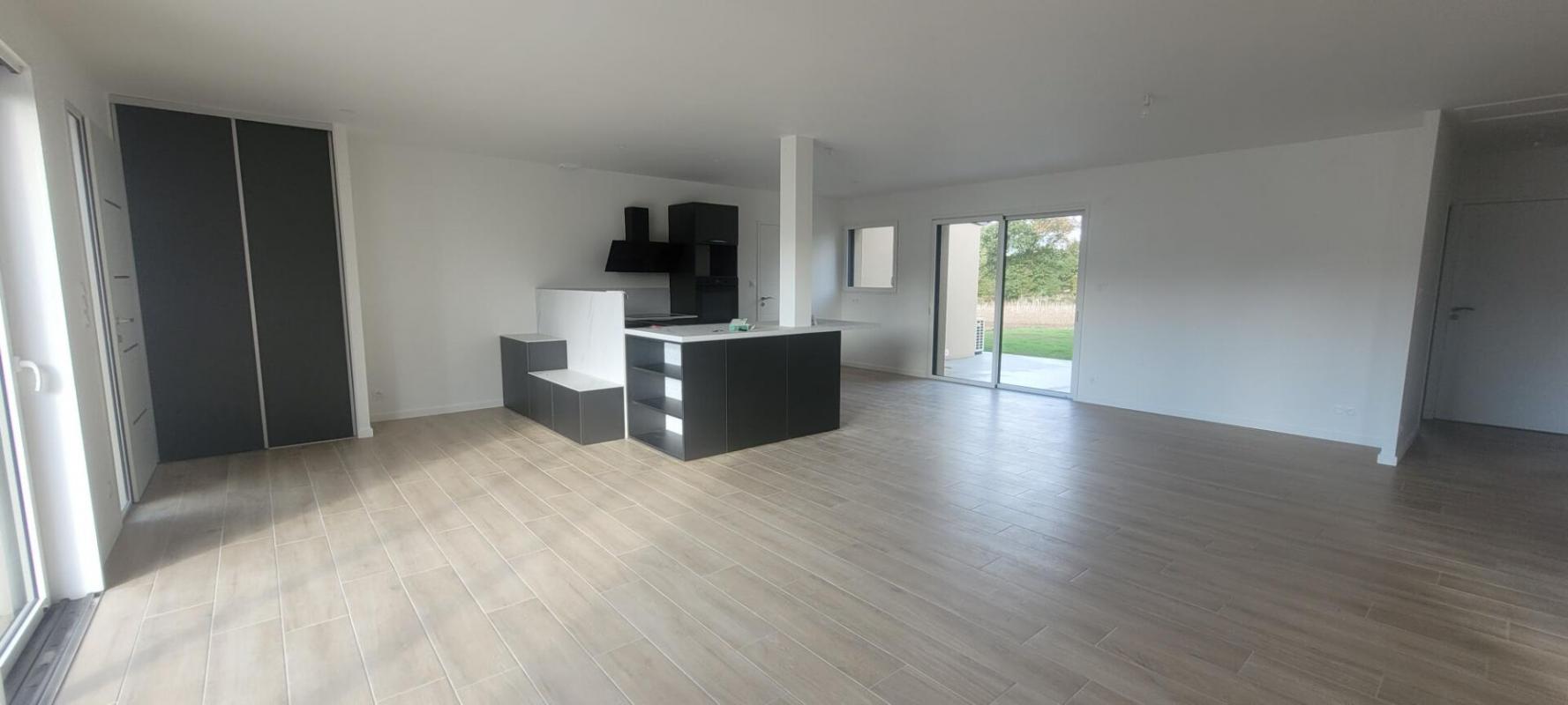 Maison neuve avec de belles prestations de plain-pied comprenant une pièce principale avec rangements à l’entrée et cuisine aménagée/équipée, 2 chambres, dressing,une salle de bains, WC. Garage, jardin.