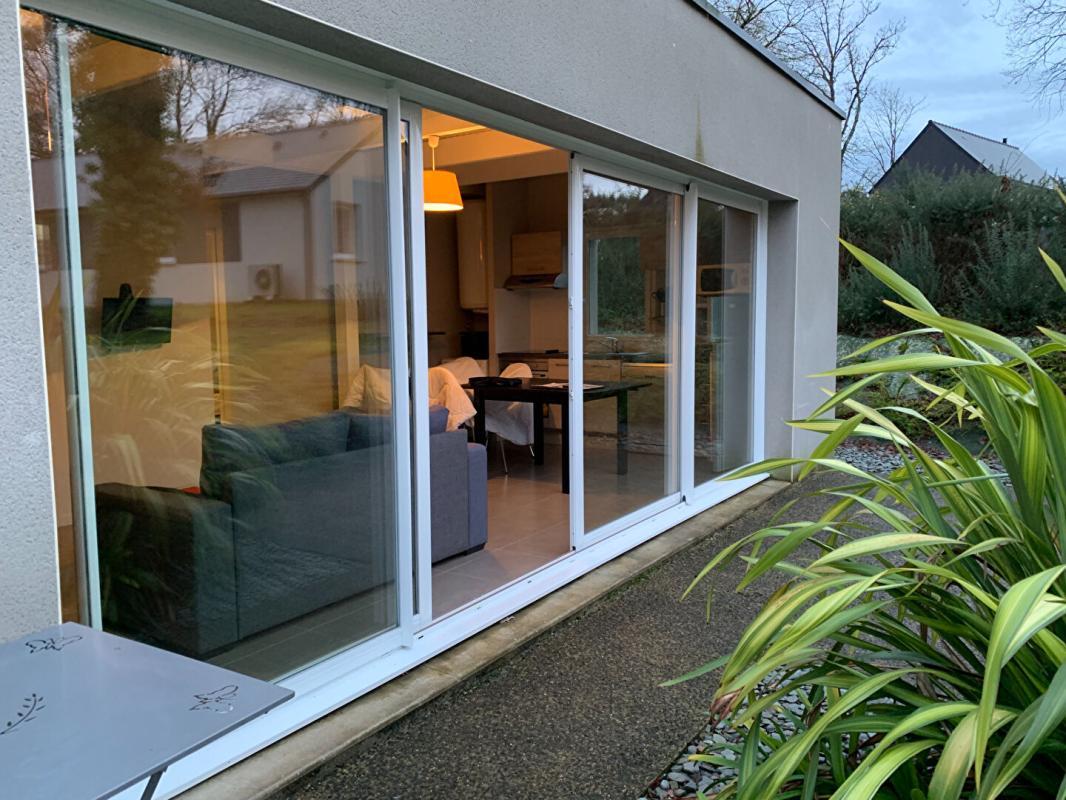 Au calme à deux pas du golf du Tronchet, maison récente MEUBLÉE de plain pied d’une superficie de 62m² avec terrasse. Mitoyenne, elle offre une entrée, une pièce de vie avec cuisine équipée, deux chambres, une salle d ‘eau, WC séparé. Terrasse.