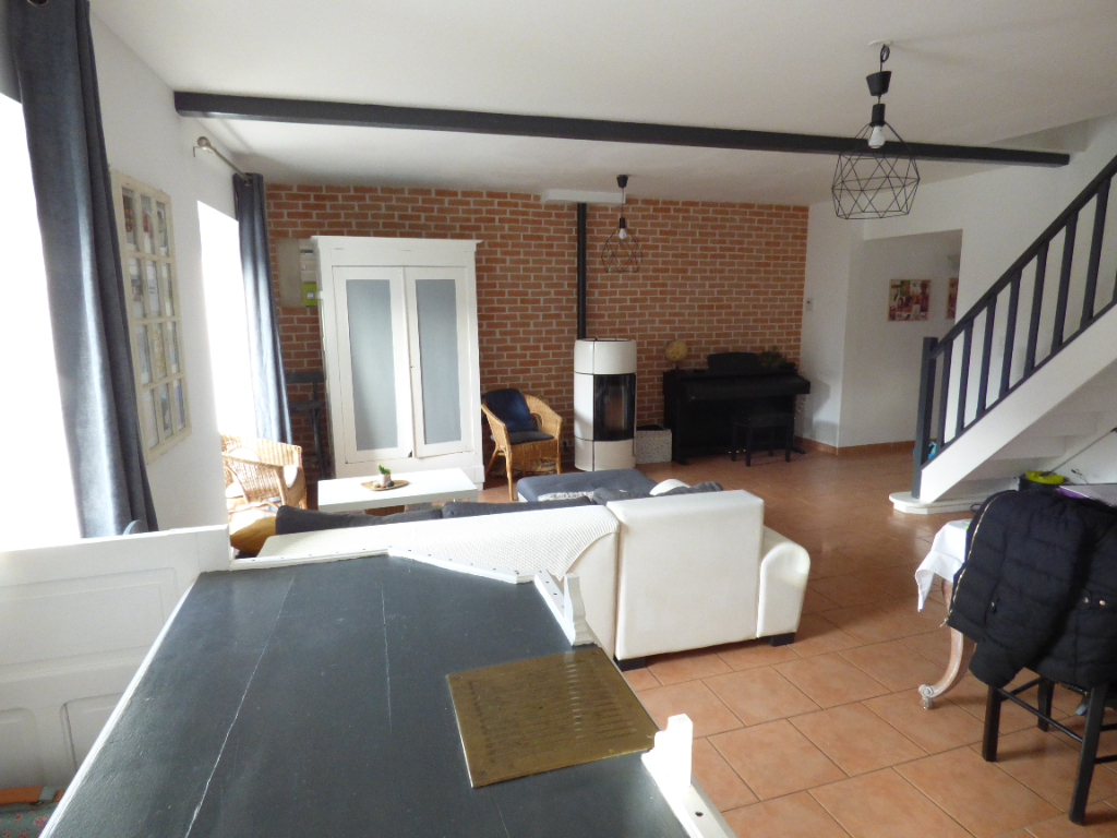 – Une entrée donnant sur un séjour très lumineux avec poêle à granulés, une cuisine américaine aménagée et équipée (Possibilité de faire une quatrième chambre au dessus de la cuisine). Une suite parentale, une buanderie et des WC indépendants.