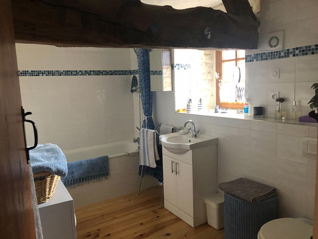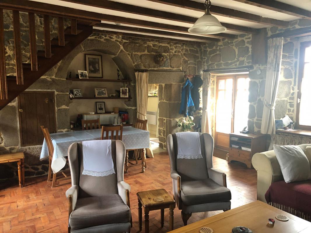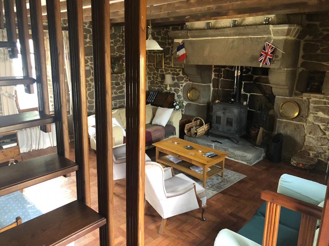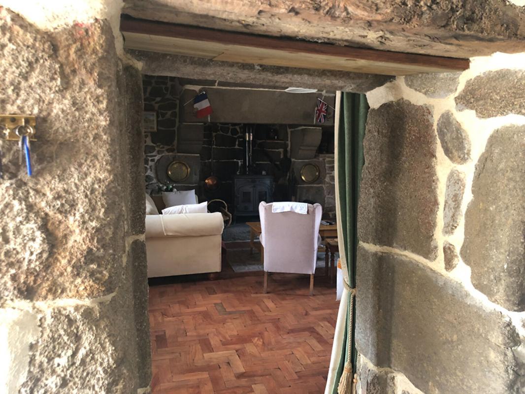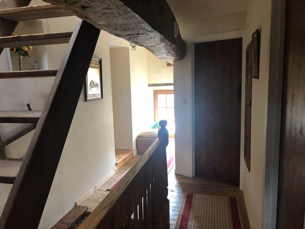 La maison comprend : une cuisine aménagée et équipée et une belle pièce de vie avec vaisselier en pierre et cheminée monumentale (poêle à bois) au RDC. Au premier étage : palier desservant deux chambres et une salle de bains. Au second étage : palier desservant une troisième chambre et une salle d’eau avec espace de rangement.