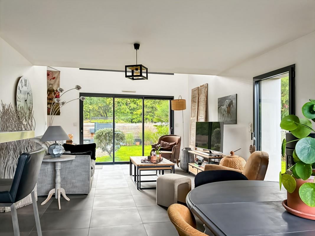 Alliant confort moderne et fonctionnalité, la maison rénovée en 2016 dans un style contemporain bénéficie d’installations équestres parfaitement adaptées.