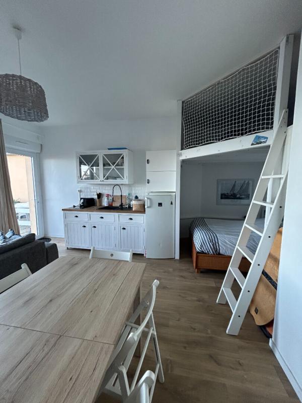 Le coin couchage ainsi que la mezzanine esprit cabine de bateau apportent charme et originalité. Salle d’eau et WC complètent l’ensemble.