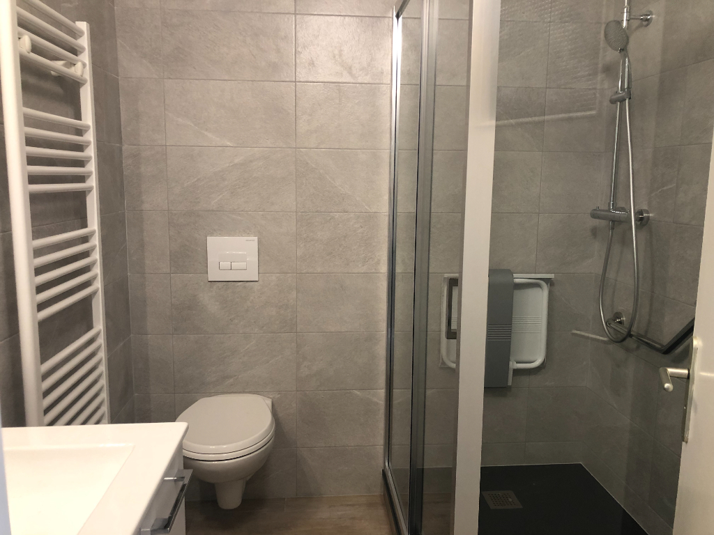 – une grande entrée, une chambre avec placard, un séjour exposé plein ouest, une cuisine indépendante aménagée et équipée, une salle d’eau avec WC.