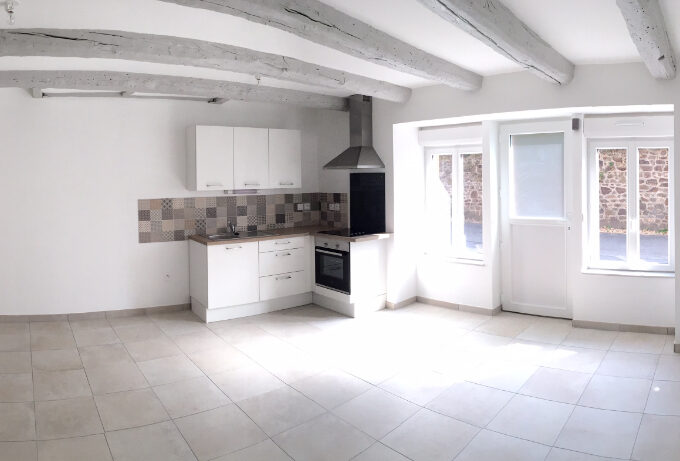 TINTENIAC – au dernier étage – idéalement placé, bel appartement de type 3 comprenant une entrée, une pièce à vivre avec cuisine aménagée, 2 chambres, salle de bains, WC, buanderie. Balcon, garage. Chauffage électrique, Chauffage électrique, DPE C.