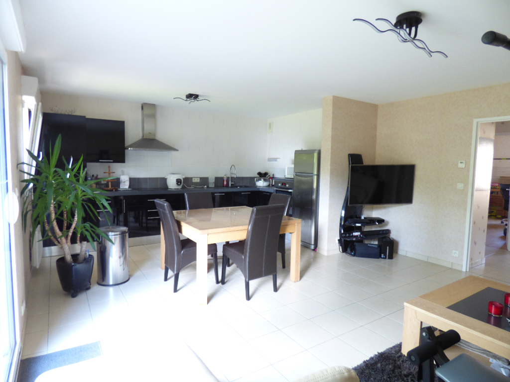 Il dispose d’une entrée avec placards, une lumineuse pièce de vie de 31.9m² exposée ouest avec cuisine aménagée et équipée ouvrant sur le jardin. 2 chambres, une salle de bains et toilette séparé.