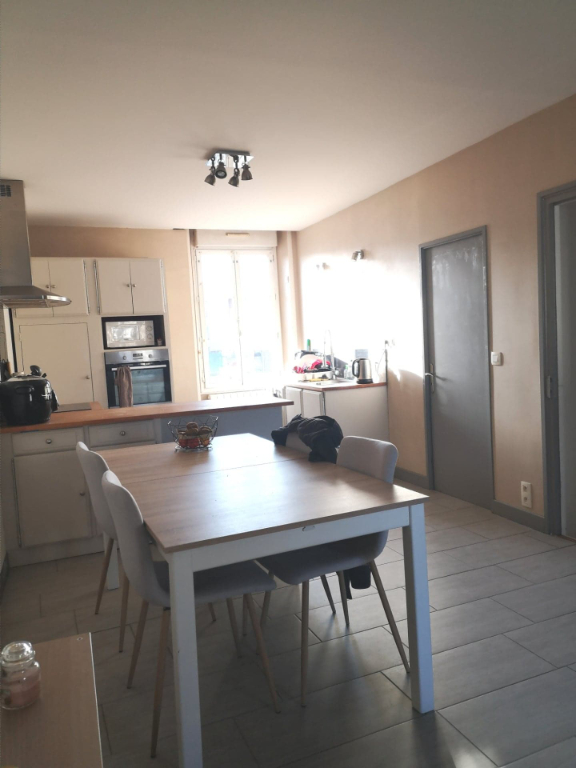 Appartement T4, de 91 m2 loi Carrez, 3 chambres, situé au 2ème étage d’un immeuble en pierres. Vaste pièce de vie lumineuse, exposition traversante EST/OUEST avec cuisine aménagée et équipée, salle d’eau avec buanderie et WC, salle de bains. Huisserie en PVC double vitrage, chauffage électrique avec radiateurs caloporteurs.